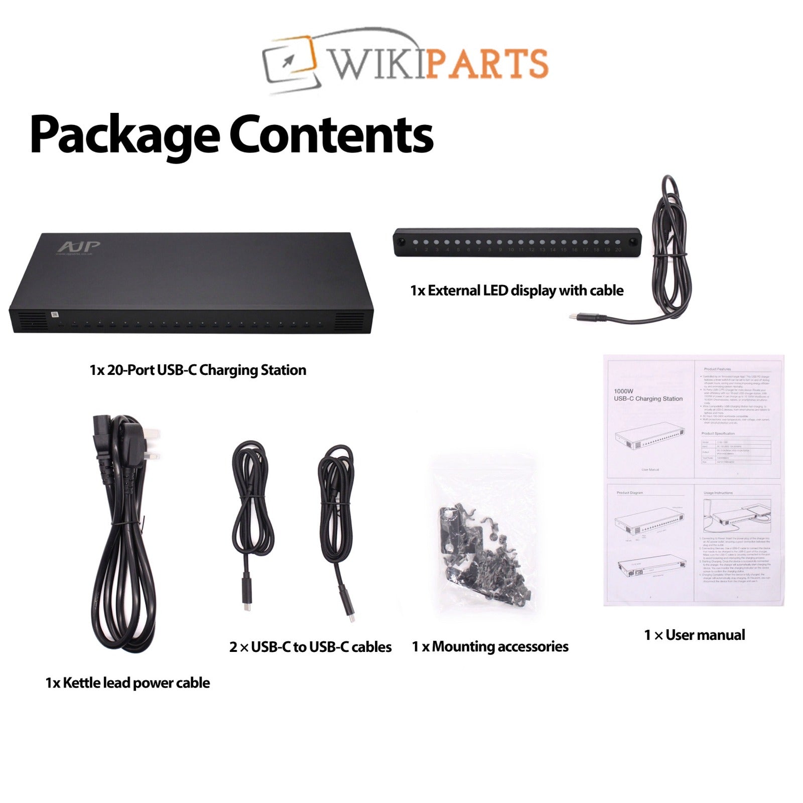 AJP 1000W 20-Port USB-C Charging Dock - 10x 100W, 16x 60W or 1x Micro-USB Input