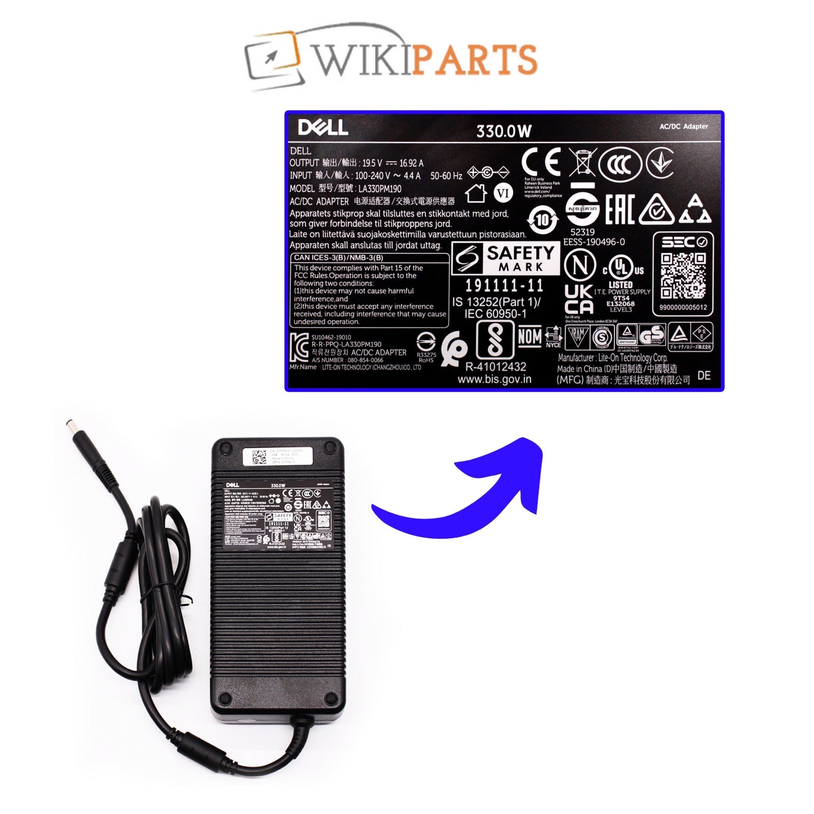 Dell 0XM3C3 XM3C3 330W AC 7.4MM x 5.0MM Fast Charging Dell Original Laptop Adapter