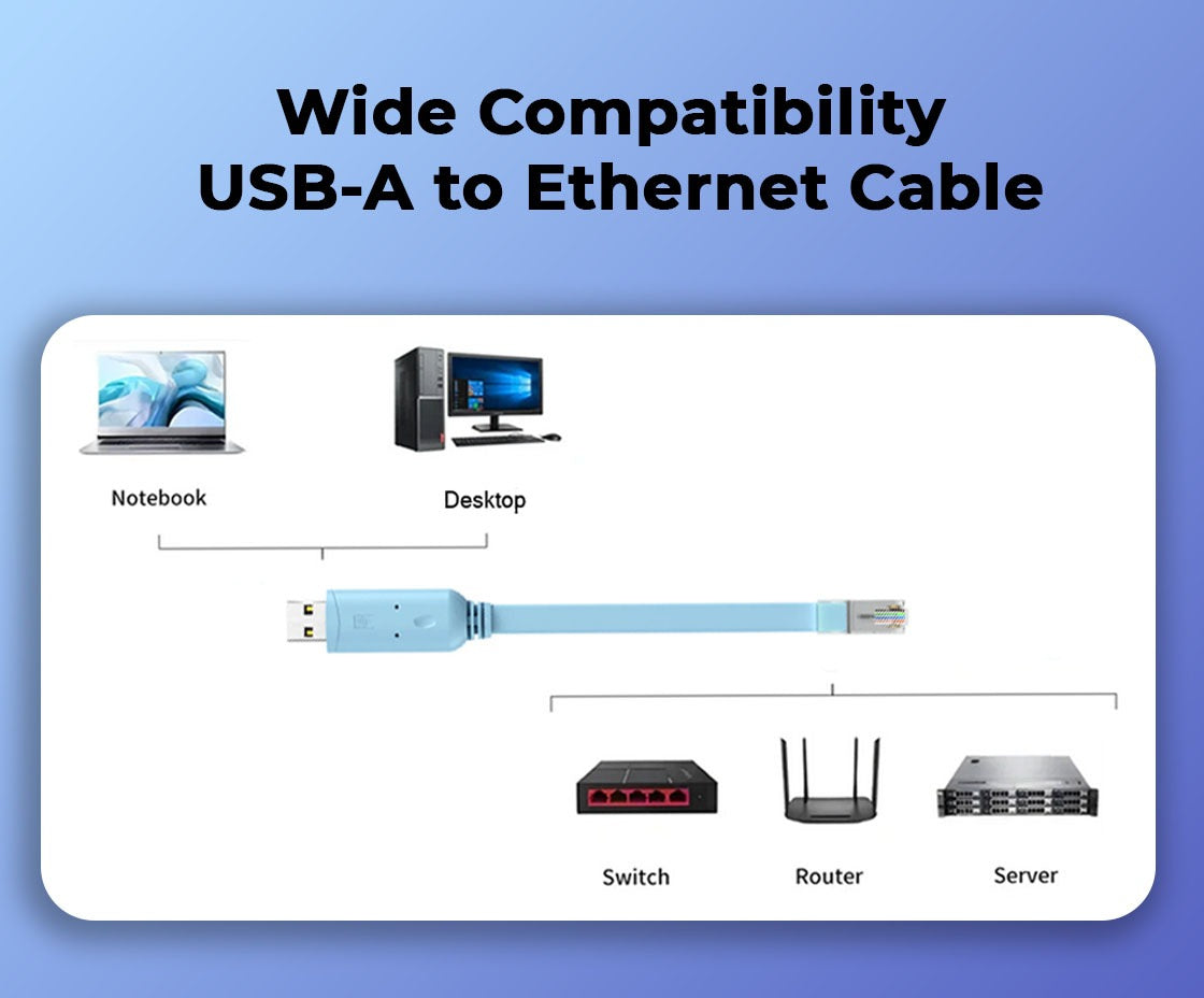 USB-A (USB 2.0) to RJ45 Console Cable for Router, Switch, Server & Network Devices – 1.8 Meters